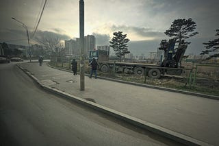 It is a long, slow walk through Mziuri Park, navigating the patches of ice that stretch into every corner.