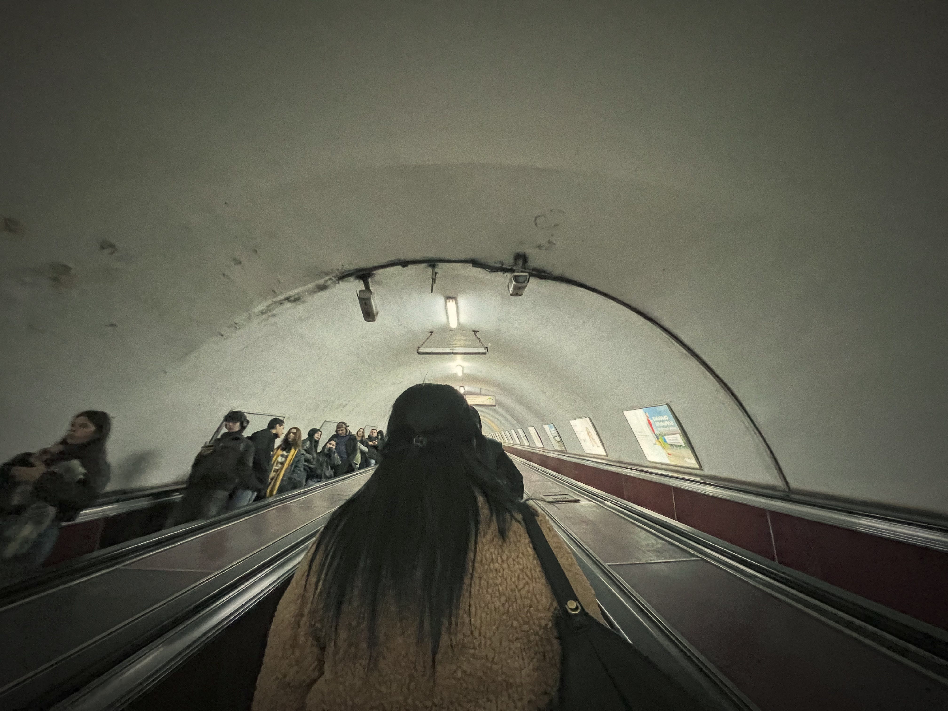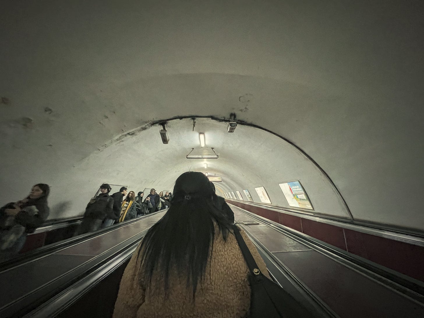 The plan goes south fairly quickly, as I understand it is not a bus but a mashrutka, a minivan crammed with people, famous for getting sneezed on by a stranger or a driver that acts out some psychosis on anyone and everyone around them. I decide to walk to the nearest metro instead. I have not been on one since before Covid, a good six years ago. There is a stray mask in a coat pocket and here I am, going down one of those epic Soviet-era escalators, rumbling slowly into the bowels of the city. A twinge of Moscow dejavu hiccups in the air, as the stairs beneath me rumble, as I remember to lean to the right so anxious people can shove past me on the left.